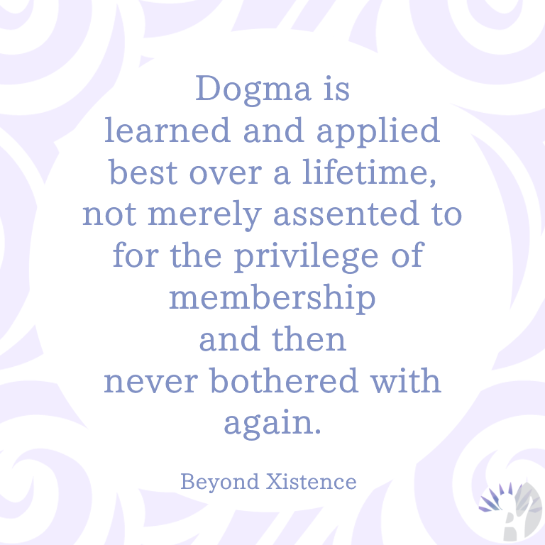 And yet, I will add from painful experience, that this dogma is best learned and applied over a lifetime, not merely assented to for the privilege of membership and then never bothered with again.